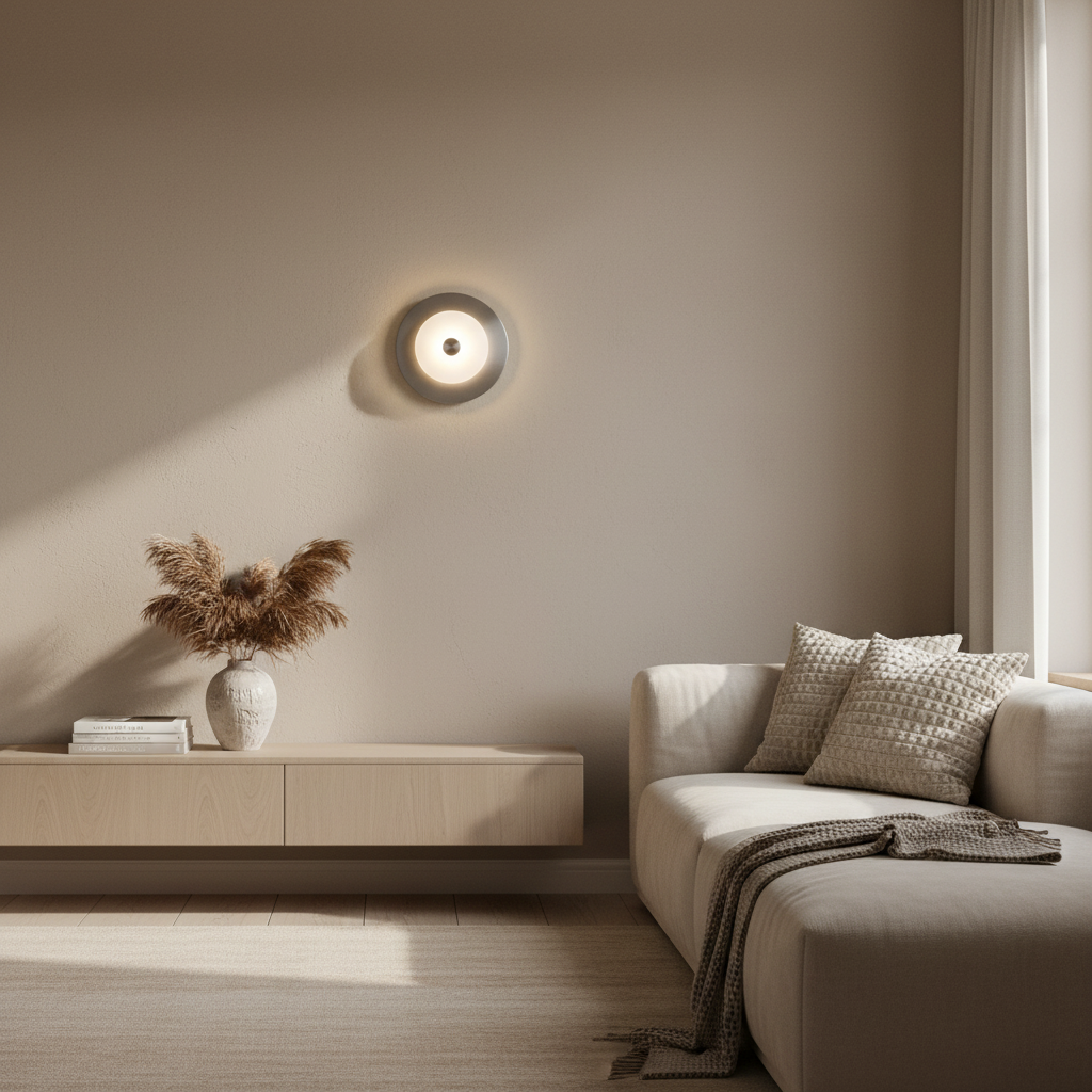A perfect blend of modern design and functional elegance, this contemporary wall lamp creates a gentle halo of light that enhances your space without overwhelming it. Its clean circular form and warm ambient glow make it ideal for hallways, living areas, or bedrooms seeking subtle, stylish illumination.