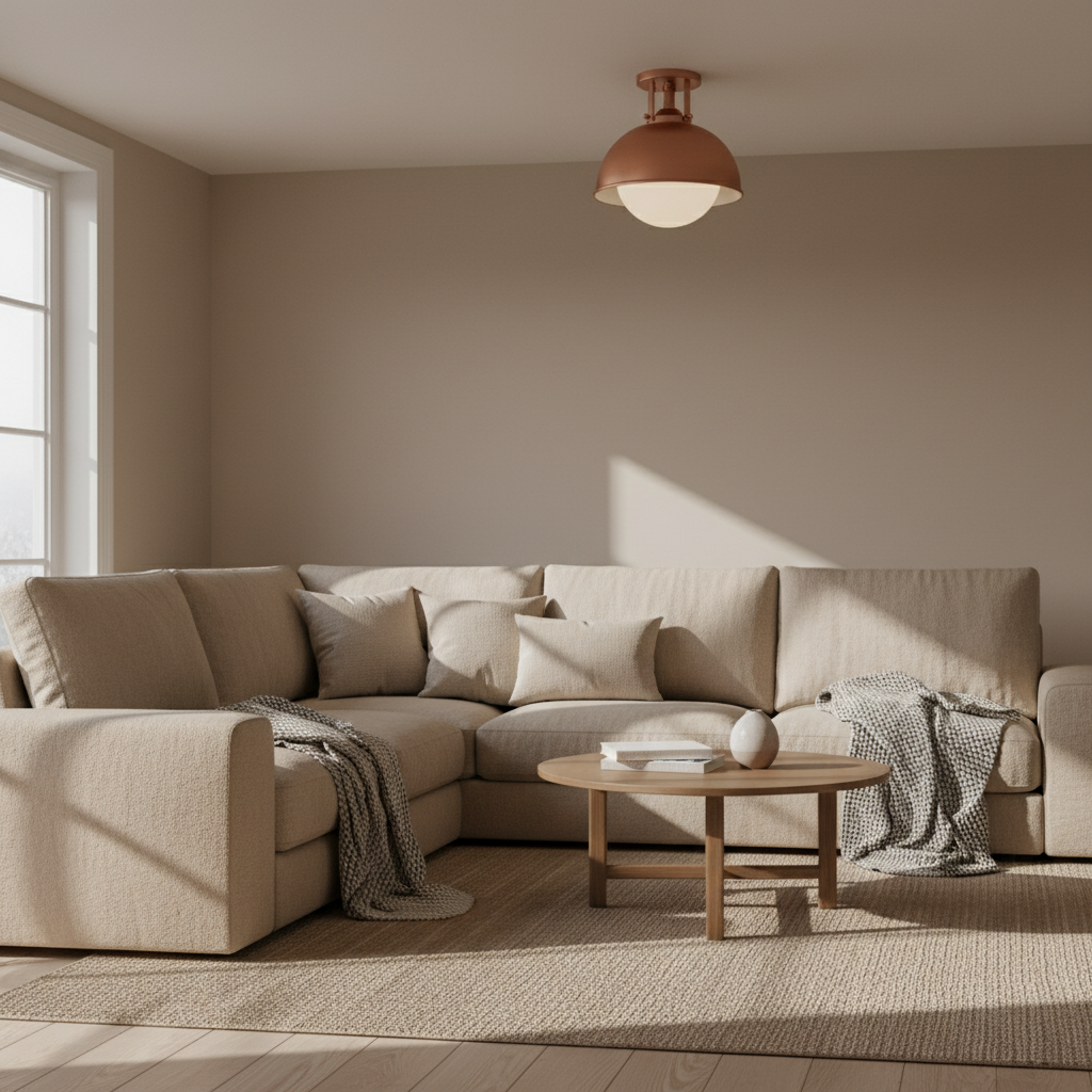 Modern ceiling light creates a soft, ambient glow ideal for cozy living spaces.